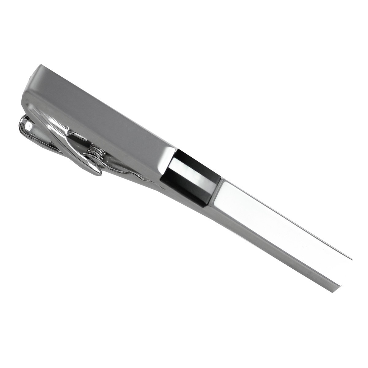 Krawattenklammer LINDENMANN, Rhodium veredelt (silberfarben), Onyx / Perlmutt, krawattenschonende...