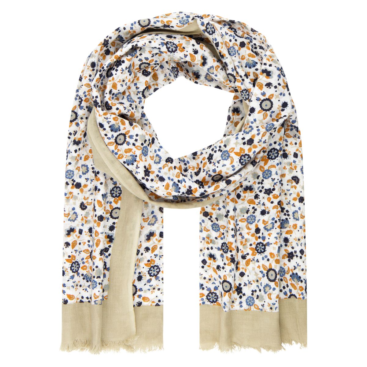 LINDENMANN Schal Herren blau-beige Herren-Schal dünn 55 % Baumwolle 45 % Viskose